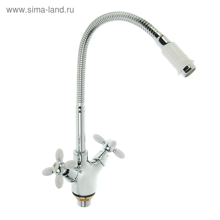 Смеситель для кухни Accoona A4882G, двухрычажный, с гибким изливом, белый/хром