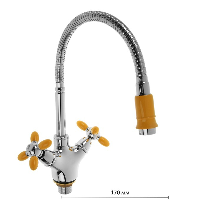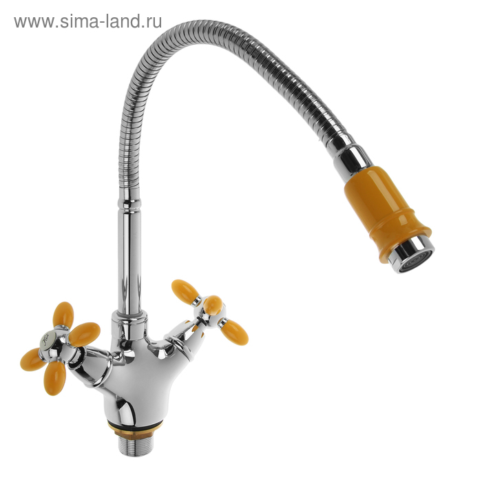 Смеситель для кухни Accoona A4882H, двухвентильный, с гибким изливом, силумин, желтый/хром
