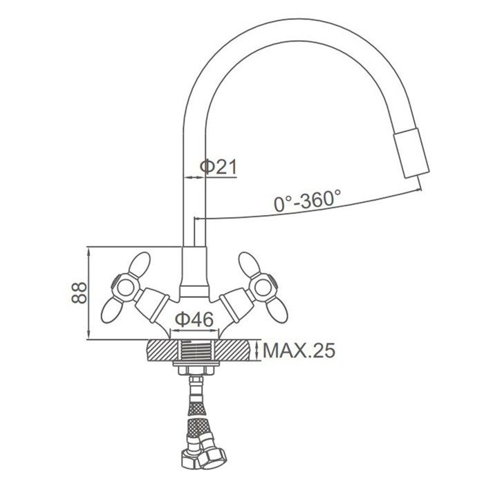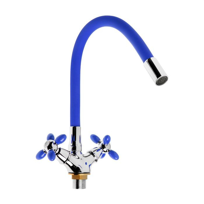 Смеситель для кухни Accoona A4882M-1, двухвентильный, с гибким изливом, синий