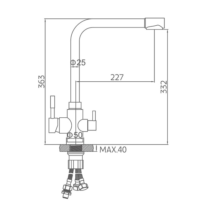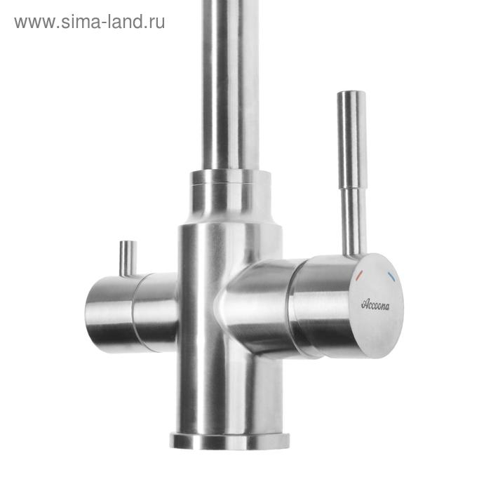 Смеситель для кухни Accoona A5179-5, с выходом для питьевой воды, нержавеющая сталь, сатин