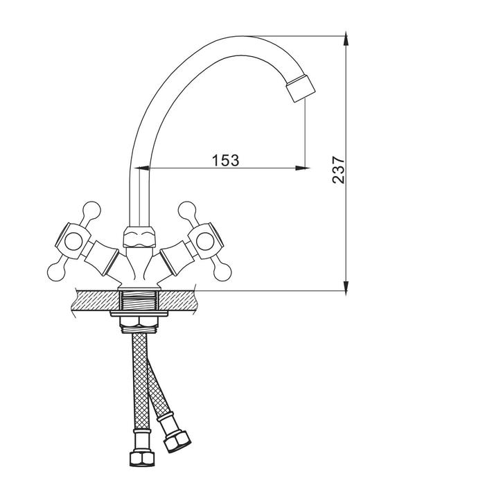 Смеситель для кухни Accoona A5677, двухрычажный, хром