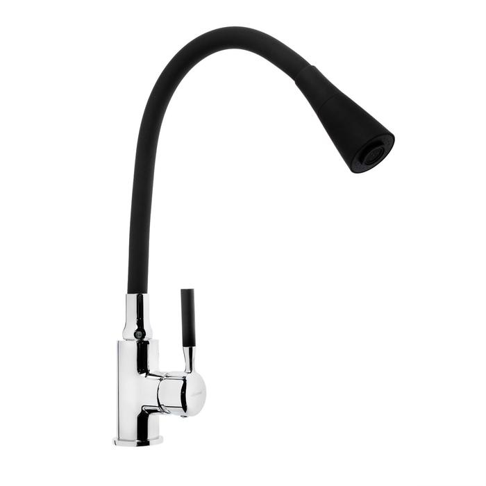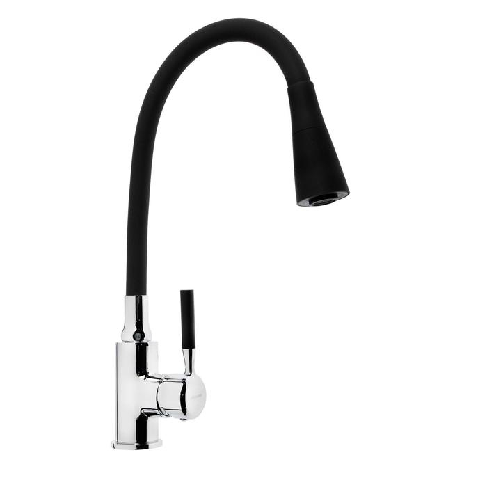 Смеситель для кухни Accoona A9890F-1, однорычажный, силиконовый излив, черный/хром