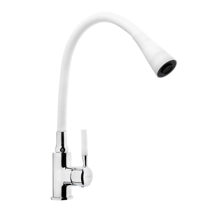Смеситель для кухни Accoona A9890G-1, однорычажный, силиконовый излив, белый/хром