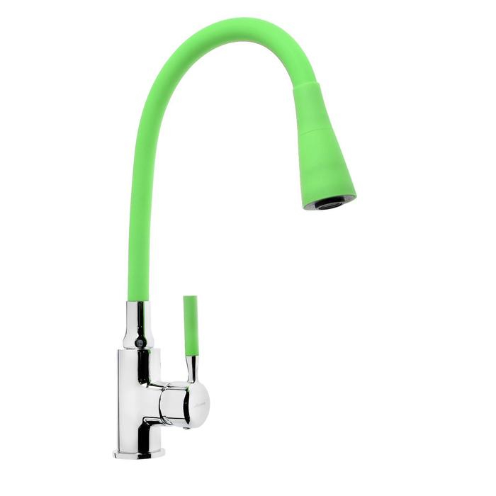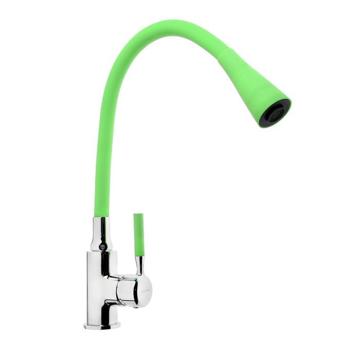 Смеситель для кухни Accoona A9890K-1, однорычажный, силиконовый излив, зеленый/хром