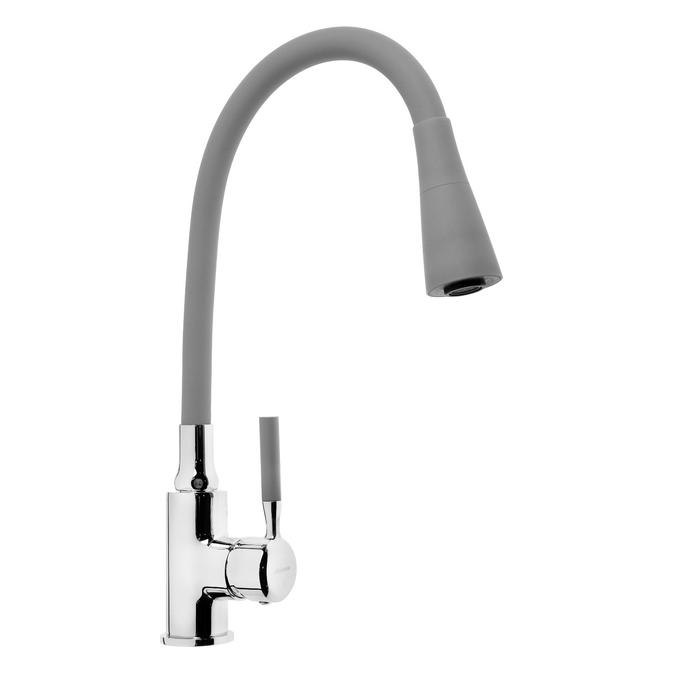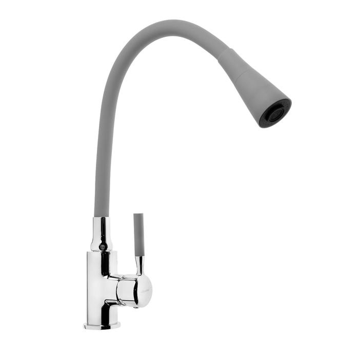 Смеситель для кухни Accoona A9890T-1, однорычажный, силиконовый излив, серый/хром