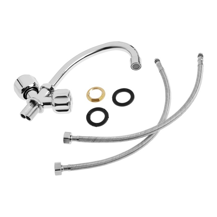Смеситель для кухни "МИРАЖ" V338M TYE-1005, двухвентильный, излив 300 мм, ручка МИКС, хром