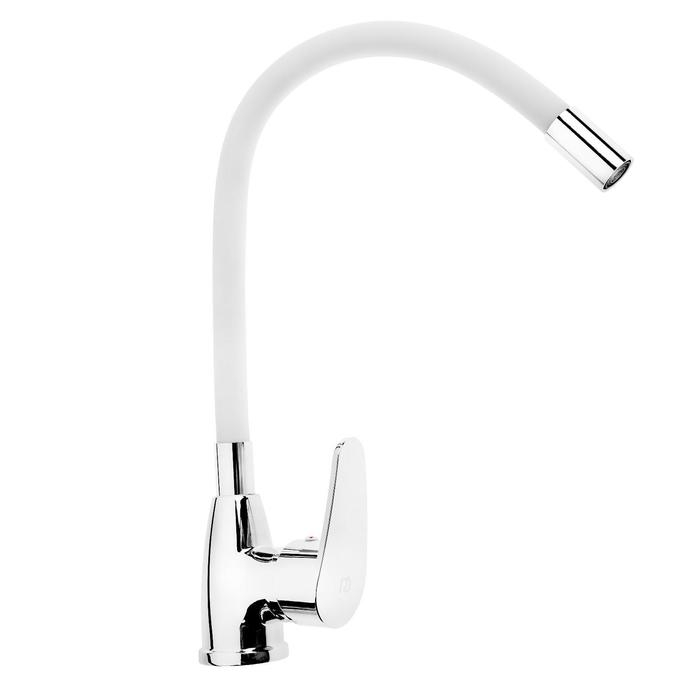 Смеситель для кухни ROEGEN RC014W, однорычажный, гибкий излив, цинк, белый, хром
