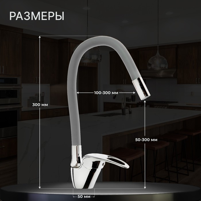 Смеситель для кухни ZEIN Z2075G, силиконовый излив, картридж 40 мм, латунь, серый/хром