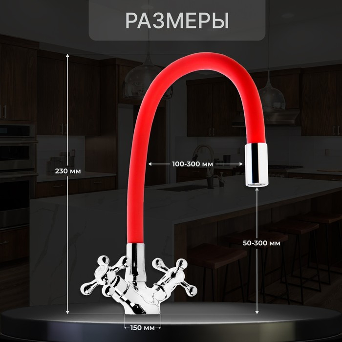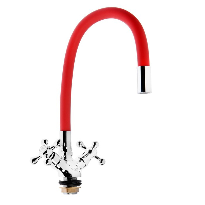 Смеситель для кухни ZEIN Z2106, двухвентильный, силиконовый излив, красный/хром