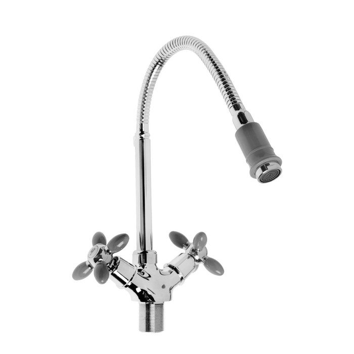 Смеситель для кухни ZEIN ZC2031, гибкий излив, кран-букса латунь 1/2", серый/хром