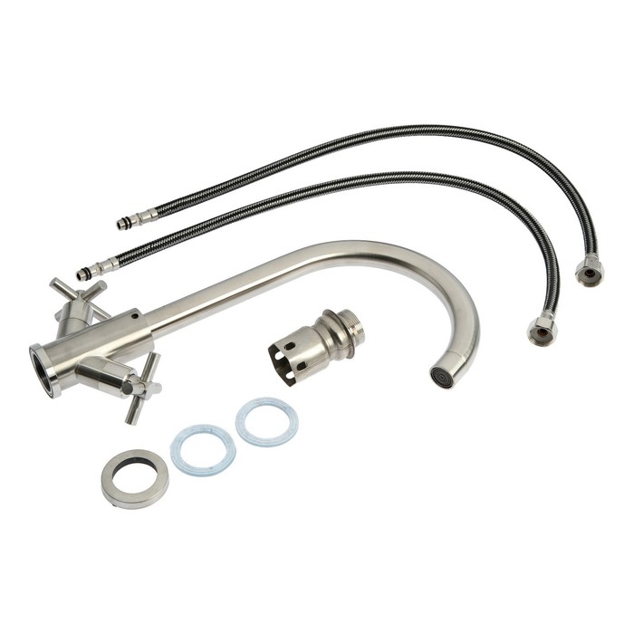 Смеситель для кухни ZEIN ZS13, кран-букса латунь 1/2", нержавеющая сталь, сатин