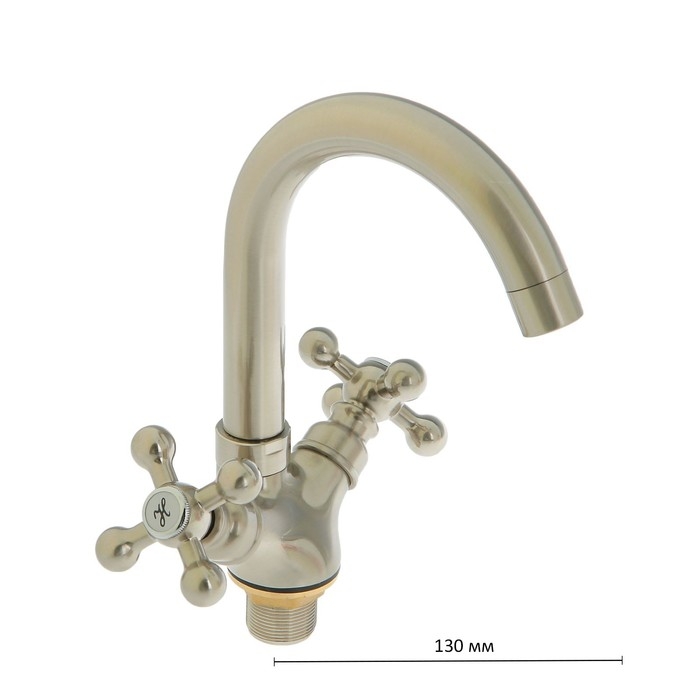Компактный двухрычажный смеситель с длинным поворотным изливом устанавливается на раковину. Современная сантехника сатинового цвета станет украшением любой ванной комнаты.