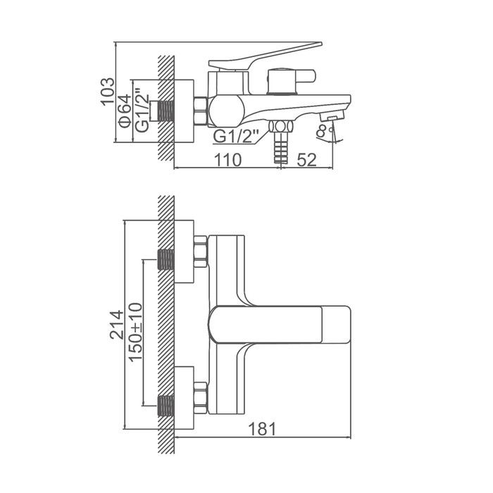 Смеситель для ванны Accoona A63122F, однорычажный, короткий излив, черный