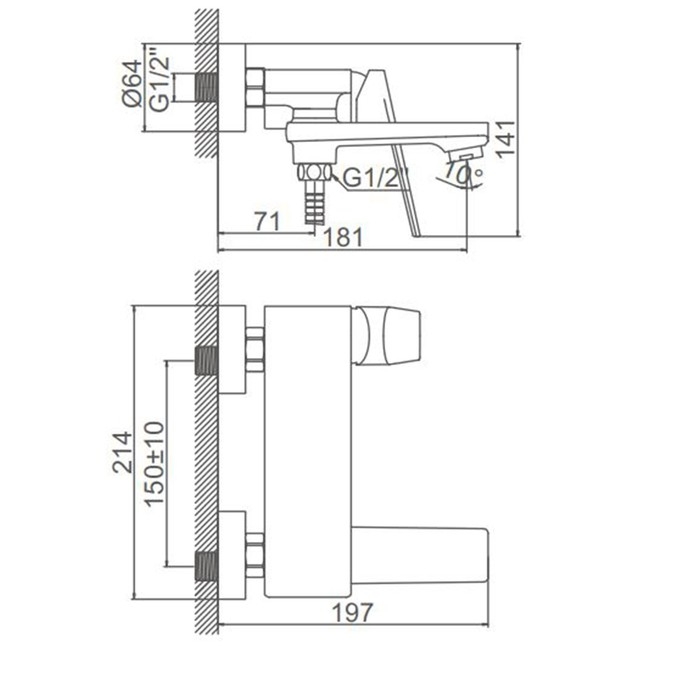 Смеситель для ванны Accoona A63125F, однорычажный, излив 181 мм, душевой набор, черный