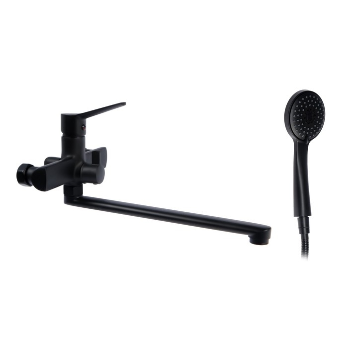 Смеситель для ванны Accoona A71300F, однорычажный, излив 300 мм, душевой набор, черный