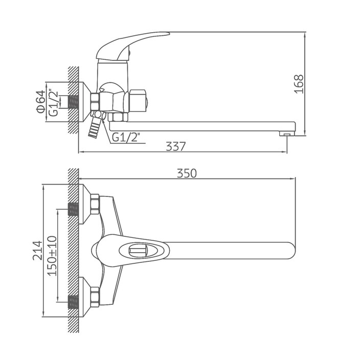 Смеситель для ванны Accoona A7140, однорычажный, излив 300 мм, с душевым набором, хром