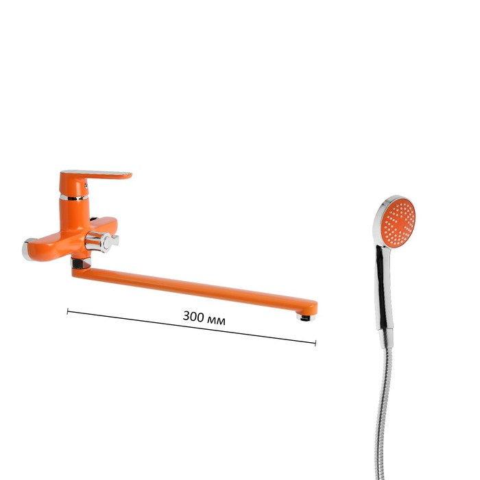 Смеситель для ванны Accoona A7166P, однорычажный, дивертор в корпусе, 30 см, оранжевый