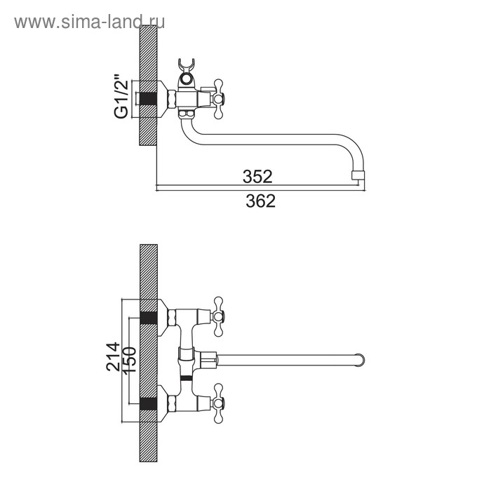 Смеситель для ванны Accoona А87176, двухрычажный, хром