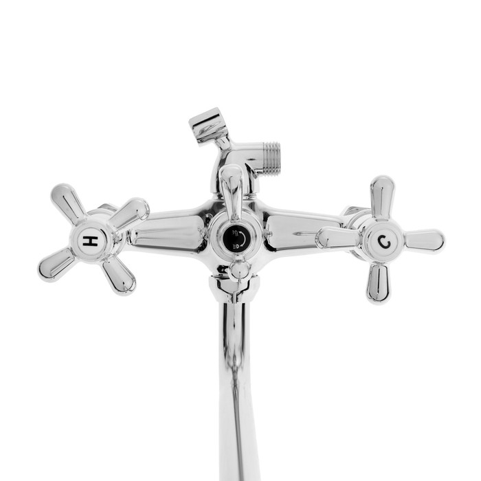 Смеситель для ванны "Центр Сантехники" 15417, двухвентильный, настенный, с душевым набором, хром