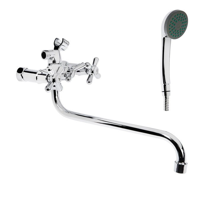 Смеситель для ванны ROEGEN RP120A, двухвентильный, с душевым набором, цинк, хром
