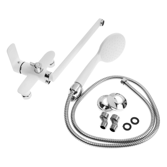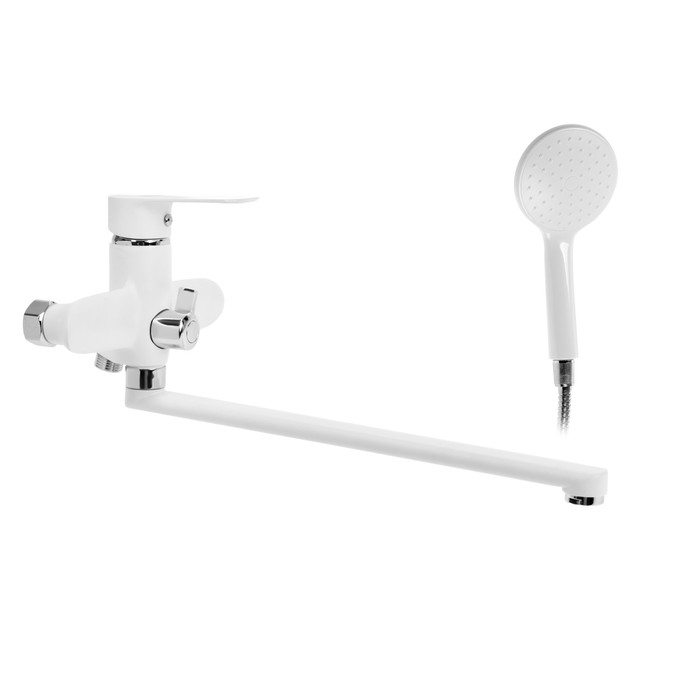 Смеситель для ванны ZEIN Z3415, картридж 35 мм, с душевым набором, цинк, белый/хром