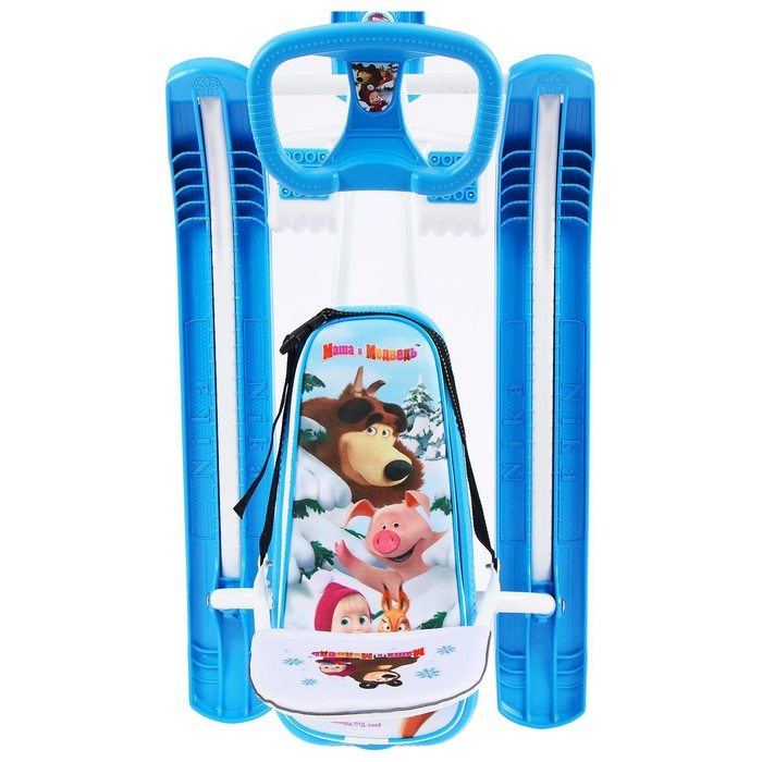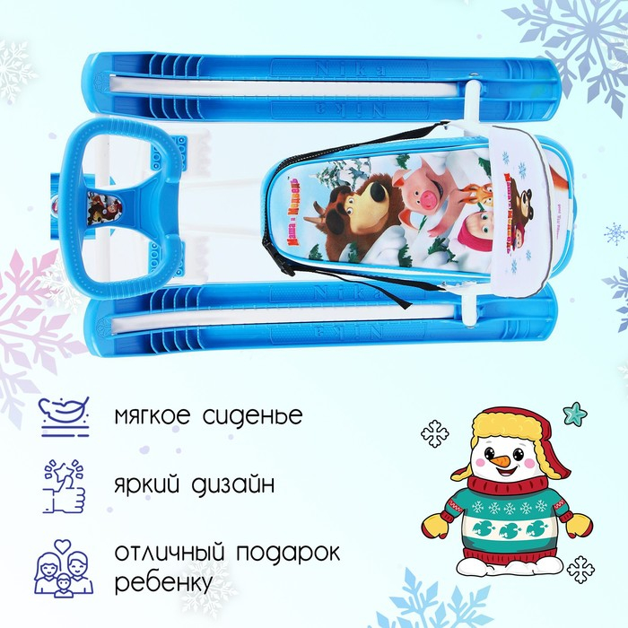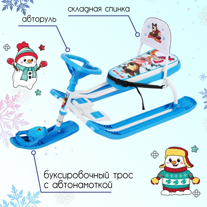 Снегокат «Маша и медведь», СММ2, со спинкой и ремнём безопасности,цвет голубой/белый
