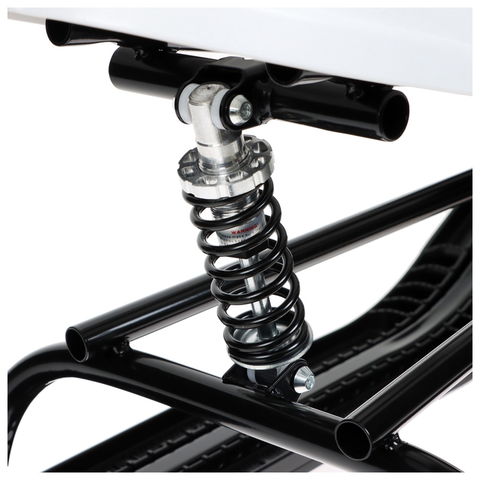 Снегокат предназначен для перевозки детей по плотному снегу, льду, а также для катания с горок. Имеет сварную конструкцию из стальных труб и пластиковых элементов и удлинённое мягкое сиденье. Снегокат оборудован буксировочным тросом с автоматической намоткой. Фонарик на руле осветит дорогу в тёмное время суток. Усиленный широкий тормоз эффективен на обледенелой поверхности и высокой скорости. В комплект входит набор наклеек на снегокат.