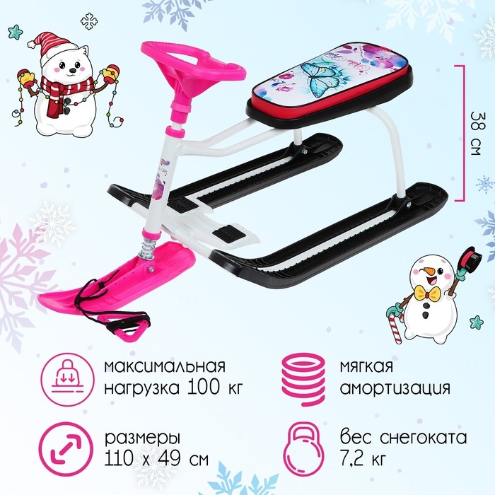 Снегокат предназначен для перевозки детей по снегу или льду, катания с горок. Оснащён мягким сиденьем.