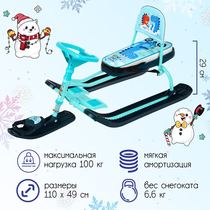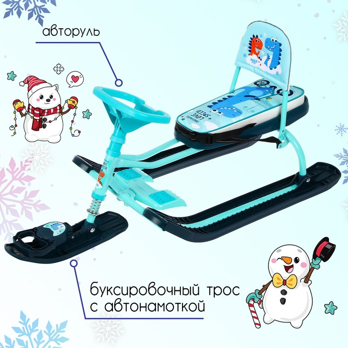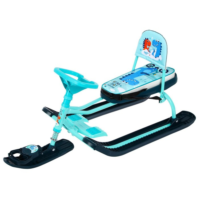Снегокат «Тимка спорт 4-1 Динозавр», ТС4-1/Д, со спинкой и ремнём безопасности, цвет голубой