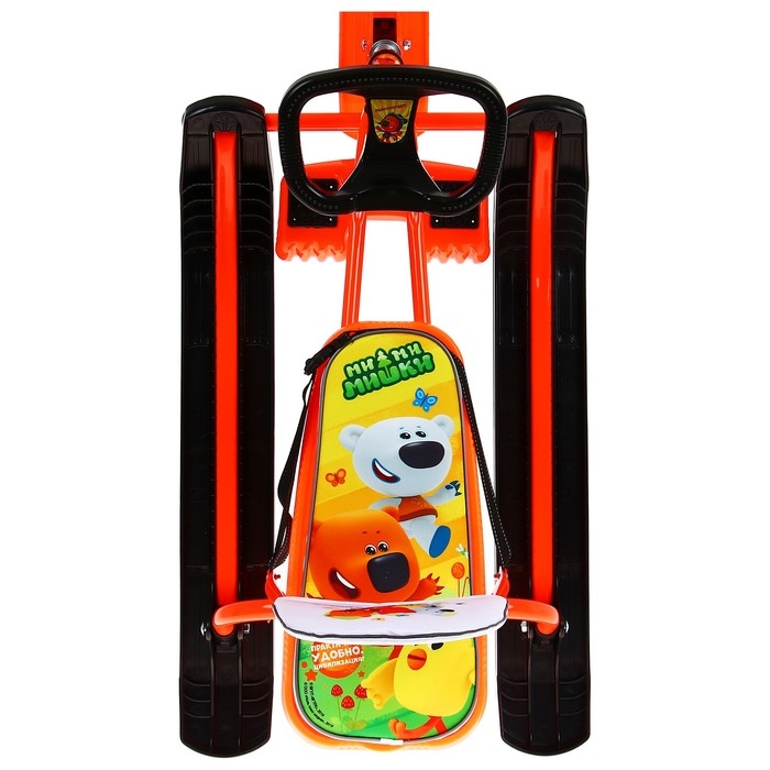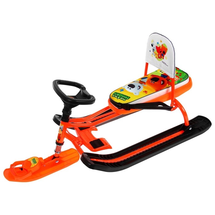 Снегокат предназначен для перевозки детей по плотному снегу или льду, катанию с горок. Имеет сварную конструкцию из стальных труб и пластиковых элементов. Оснащён мягким сиденьем, обтянутым искусственной кожей с рисунком, складной спинкой и 2-точечным ремнём безопасности. Оборудован буксировочным тросом с автоматической намоткой и системой амортизации, которая обеспечивает комфортную поездку по крутым горкам и неровным поверхностям. Усиленный тормоз эффективен на обледенелой поверхности.