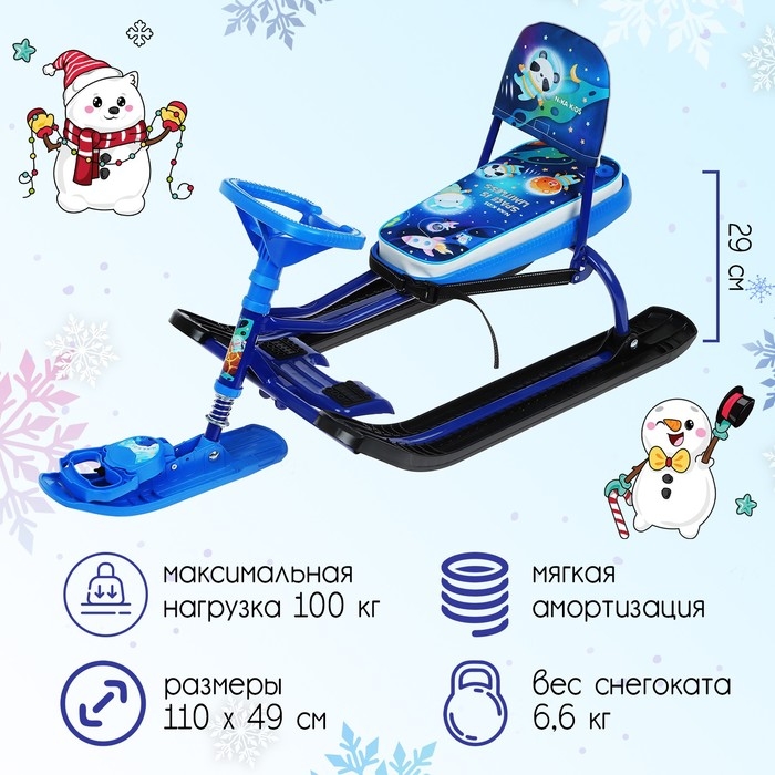 Снегокат «Тимка спорт 4-1», ТС4-1М/К, со спинкой и ремнём безопасности, цвет чёрный/синий