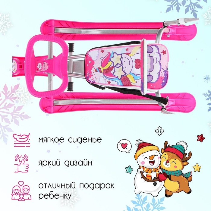 Снегокат TWINY 2 «Единорог», TW2-M/EP, с родительской ручкой, со спинкой и ремнём безопасности, цвет розовый/серый