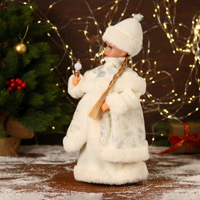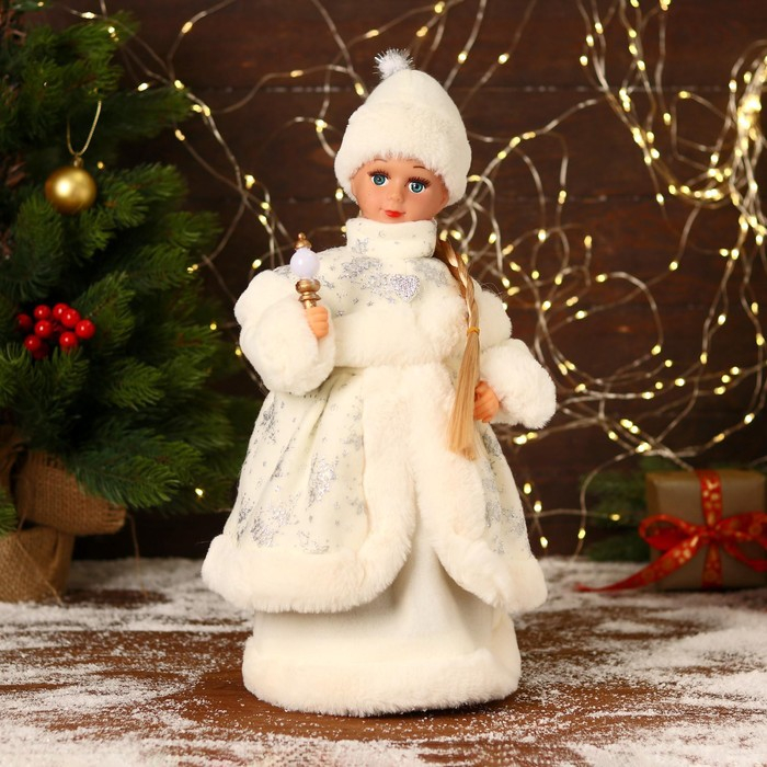 Снегурочка "В белой шубке и шапочке" двигается, 40 см
