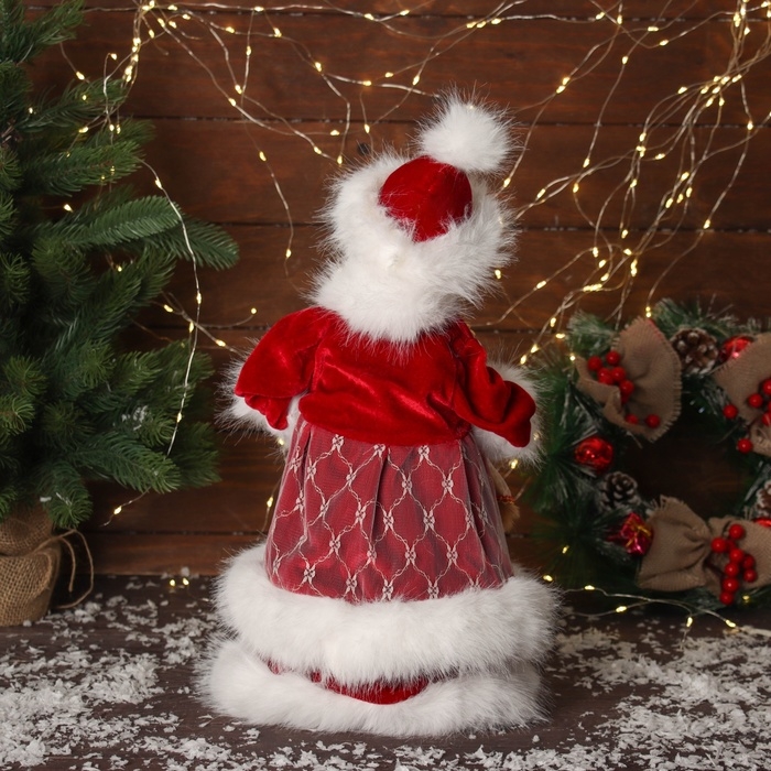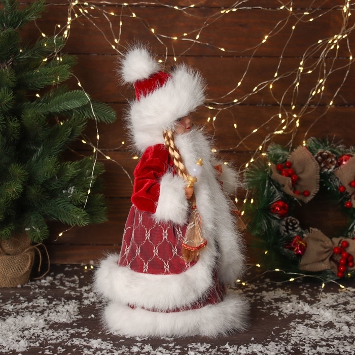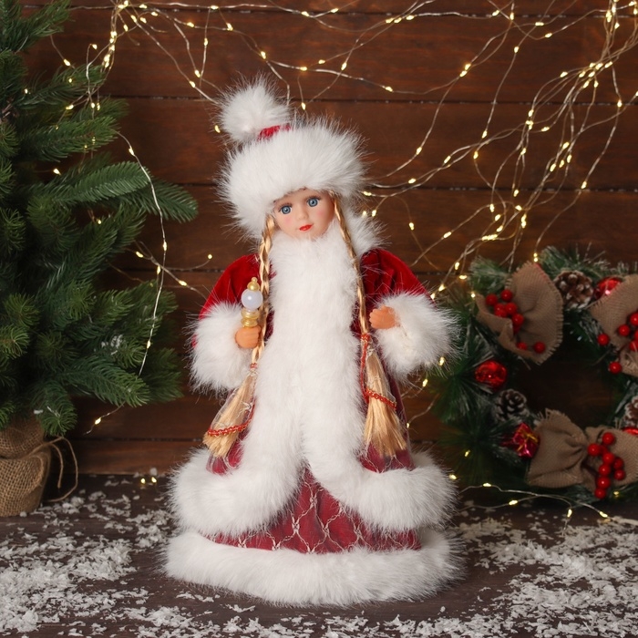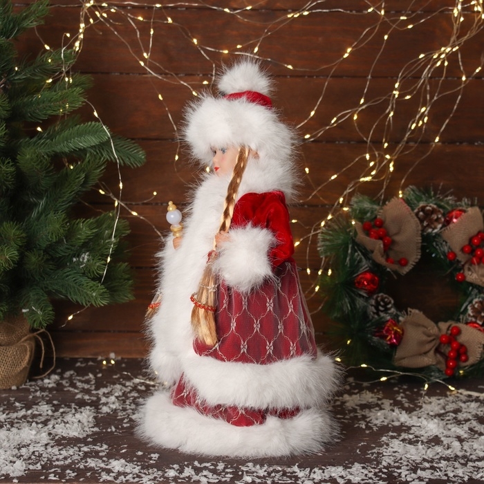 Снегурочка "В пушистой шубке, с фонариком" двигается, с подсветкой, 40х20 см, красный