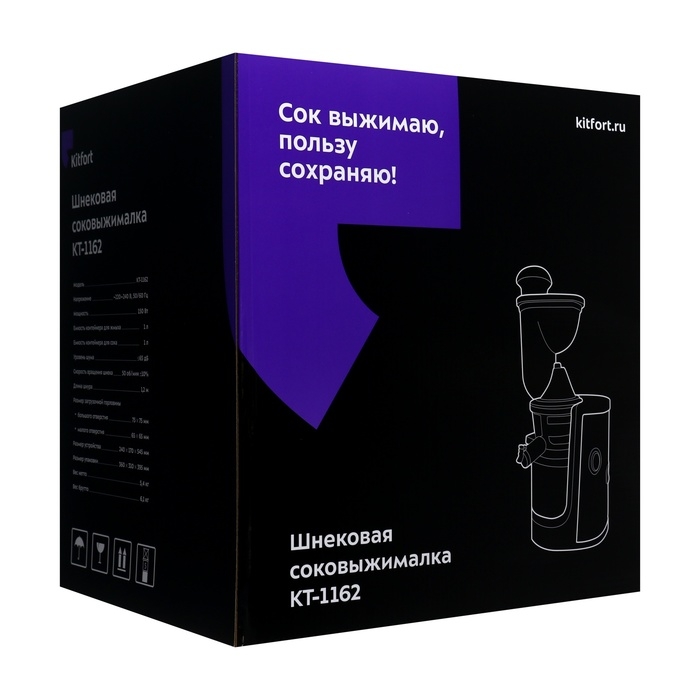 Соковыжималка Kitfort КТ-1162, шнековая, 150 Вт, 1/1 л, 50 об/мин, чёрная