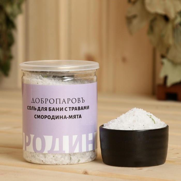 Соль для бани с травами "Смородина - Мята" в прозрачной банке 400 г