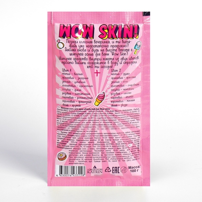 Соль для ванн шипучая Laboratory Katrin с ароматом яркого апельсина и кислого лайма, 100 г