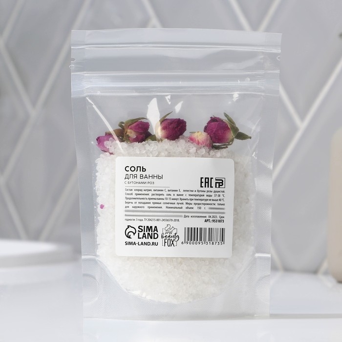 Соль для ванны с бутонами роз, расслабление и омоложение, 150 г, аромат розы, BEAUTY FOX