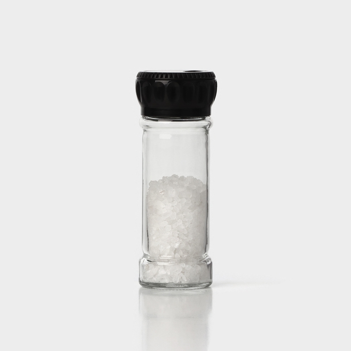 Он состоит из стеклянного контейнера для специй, и пластикового дозатора, который выдает необходимое количество специй в блюдо по мере необходимости.