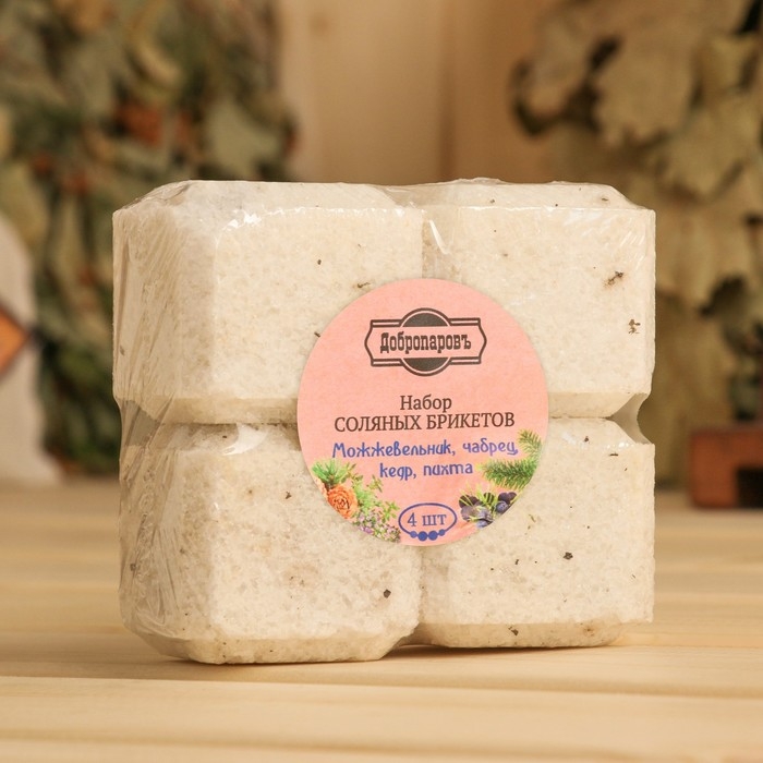 Соляной брикет набор 4 шт "Можжевельник, чабрец, кедр, пихта" по 200 гр "Добропаровъ"