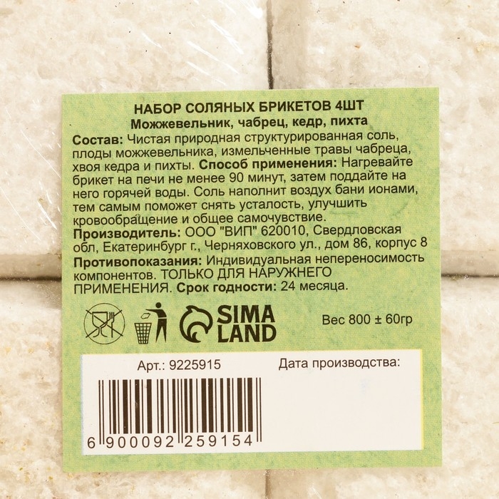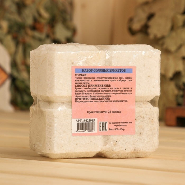 Применение: нагревайте брикет на печи не менее 90 минут, затем поддайте на него горячей воды. Соль наполнит воздух бани ионами, тем самым поможет снять усталость, улучшить кровообращение и общее самочувствие.