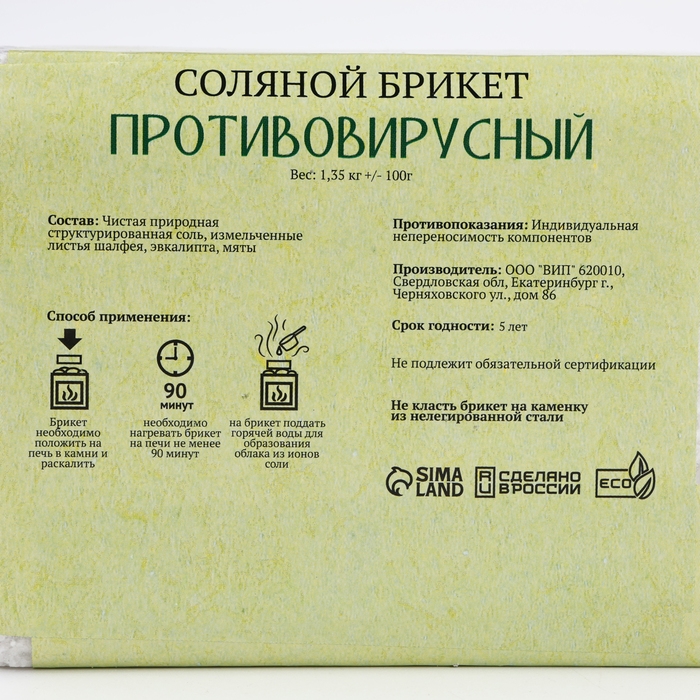 Соляной брикет "Противовирусный" эвкалипт, шалфей, мята 1,35 кг "Добропаровъ"
