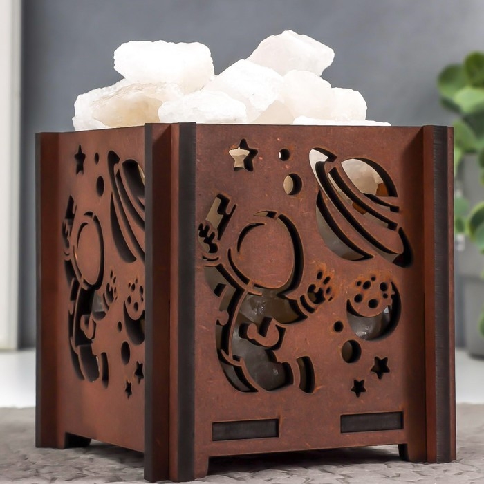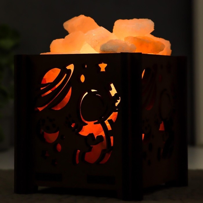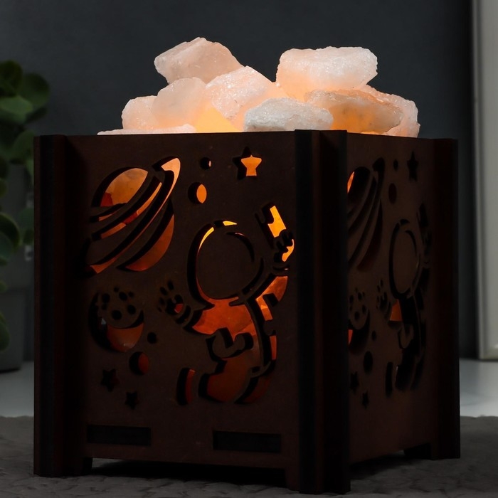 Соляной светильник "Космонавт" E14 15Вт диммер бел. соль 1,8 кг 12х12х15 см