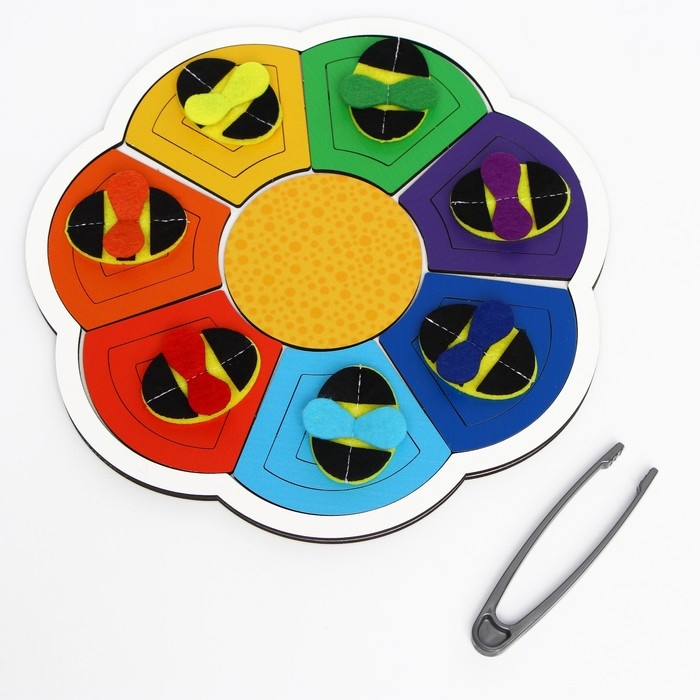 - Распределите пчёлок на каждый лепесток в соответствии с цветом.