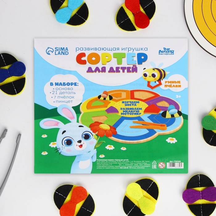 С сортером «Милые пчёлки» изучать формы и цвета будет весело и интересно!