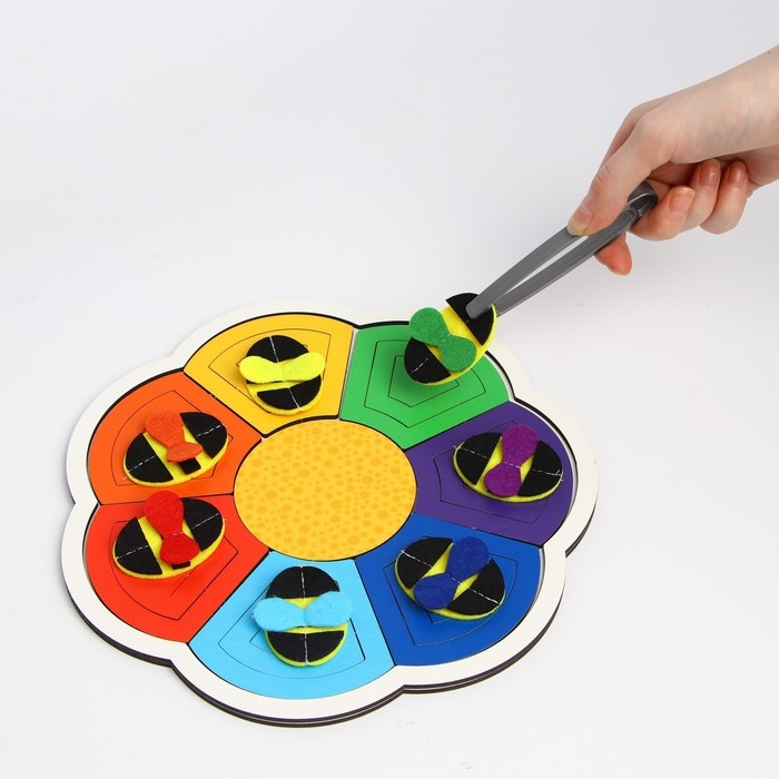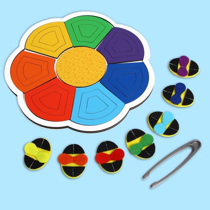 - Распределите пчёлок на каждый лепесток в соответствии с цветом.
