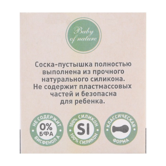 Соска - пустышка силиконовая ортодонтическая, от 0 мес., цвет бежевый