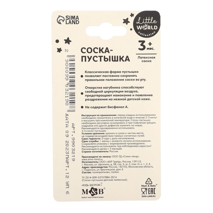 Соска-пустышка со латексным соском предназначена для малышей разных возрастов (см. в наименовании). Форма нагубника с симметрично расположенными отверстиями обеспечивает свободную циркуляцию воздуха для предотвражения появления опрелостей.