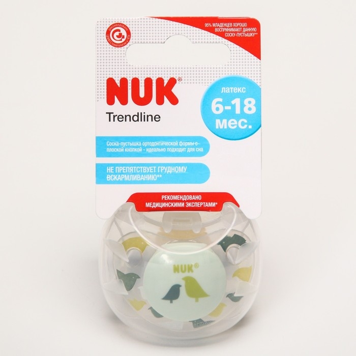 Соска-пустышка ортодонтическая, латекс, от 6 мес., ADORE, в контейнере «Птицы»