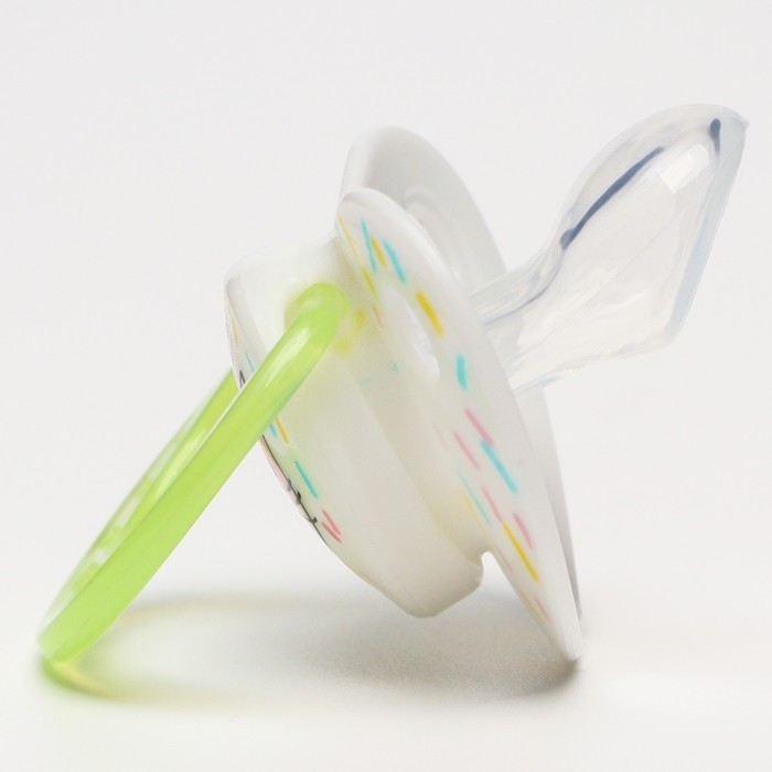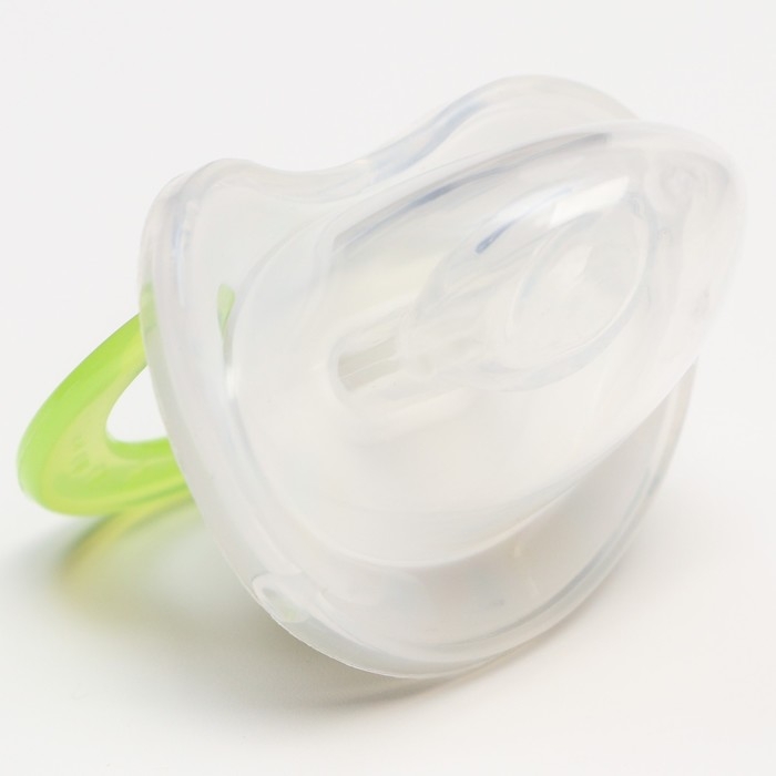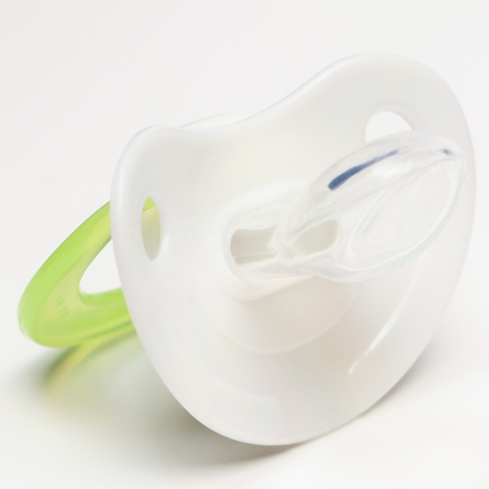Соска пустышки силиконовая и имеет анатомическую форму диска, специальные вентиляционные отверстия на пустышке улучшают циркуляцию воздуха не раздражают кожу малыша и не оставляют следов и опрелостей. Создана для удовлетворения естественного сосательного рефлекса малышей. Пустышка анатомической формы имеет немного сплюснутый сосок, благодаря чему прилегает к языку.